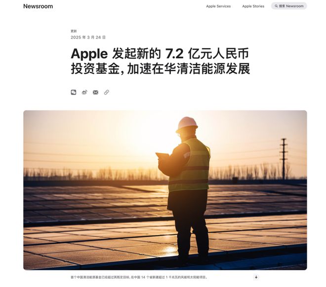 3 月 24 日,苹果发文宣布加注一笔新的投资基金,旨在扩大中国的清洁能源产能,并表示该笔投资,是公司实现 2030 年将其供应链过渡到 100% 使用可再生能源的努力的一部分。